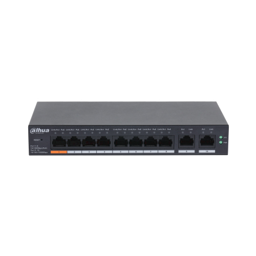 Port 1-8: 8 × RJ-45 10/100 Mbps (PoE); Port 9-10: 2 × RJ-45 10/100/1000 Mbps (uplink) |